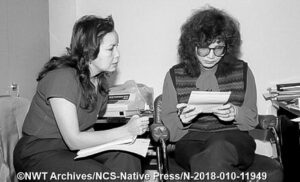 Gail Cyr, on the right, works with an unidentified woman in 1983. (Photo courtesy of NWT Archives/Arthur Boutilier fonds)