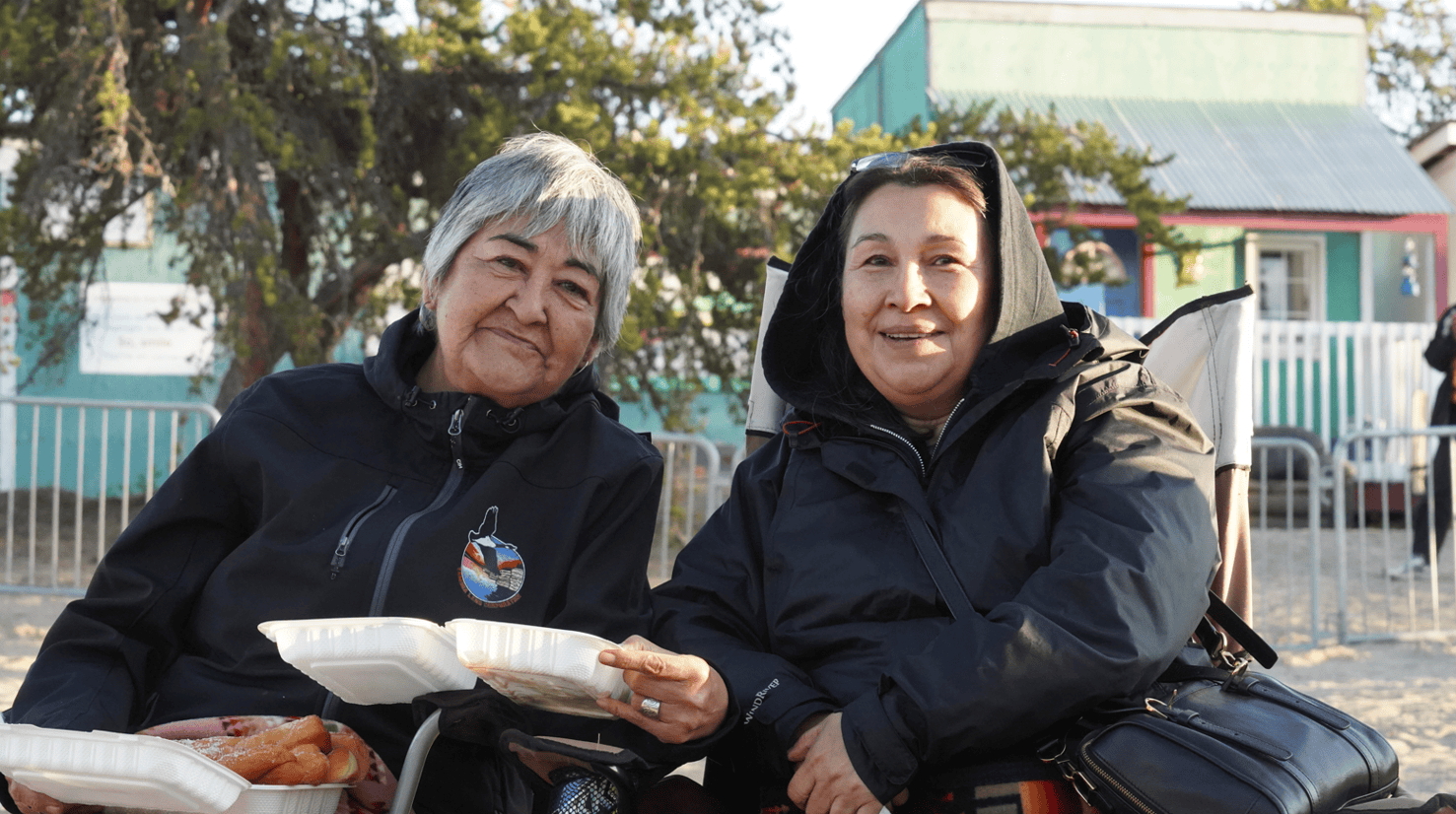 - Betty Barnaby (left) and Lucy Yakeleya of Fort Good Hope decided to attend FOTR during a medical travel in Yellowknife. They loved Peter Dreams. (Josie Jiaxuan Wu/CKLB)